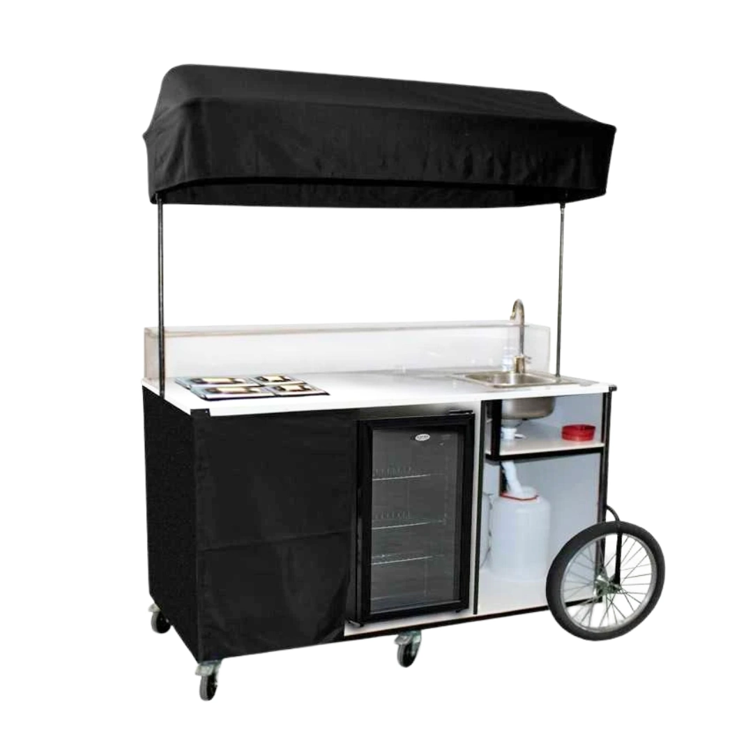 El Carrito con Grifo y Fregadero está diseñado para ofrecer una experiencia de venta ambulante práctica, higiénica y atractiva. Equipado con lavabo y grifo, facilita la preparación de alimentos en condiciones seguras y cumple con los estándares básicos de higiene en hostelería.