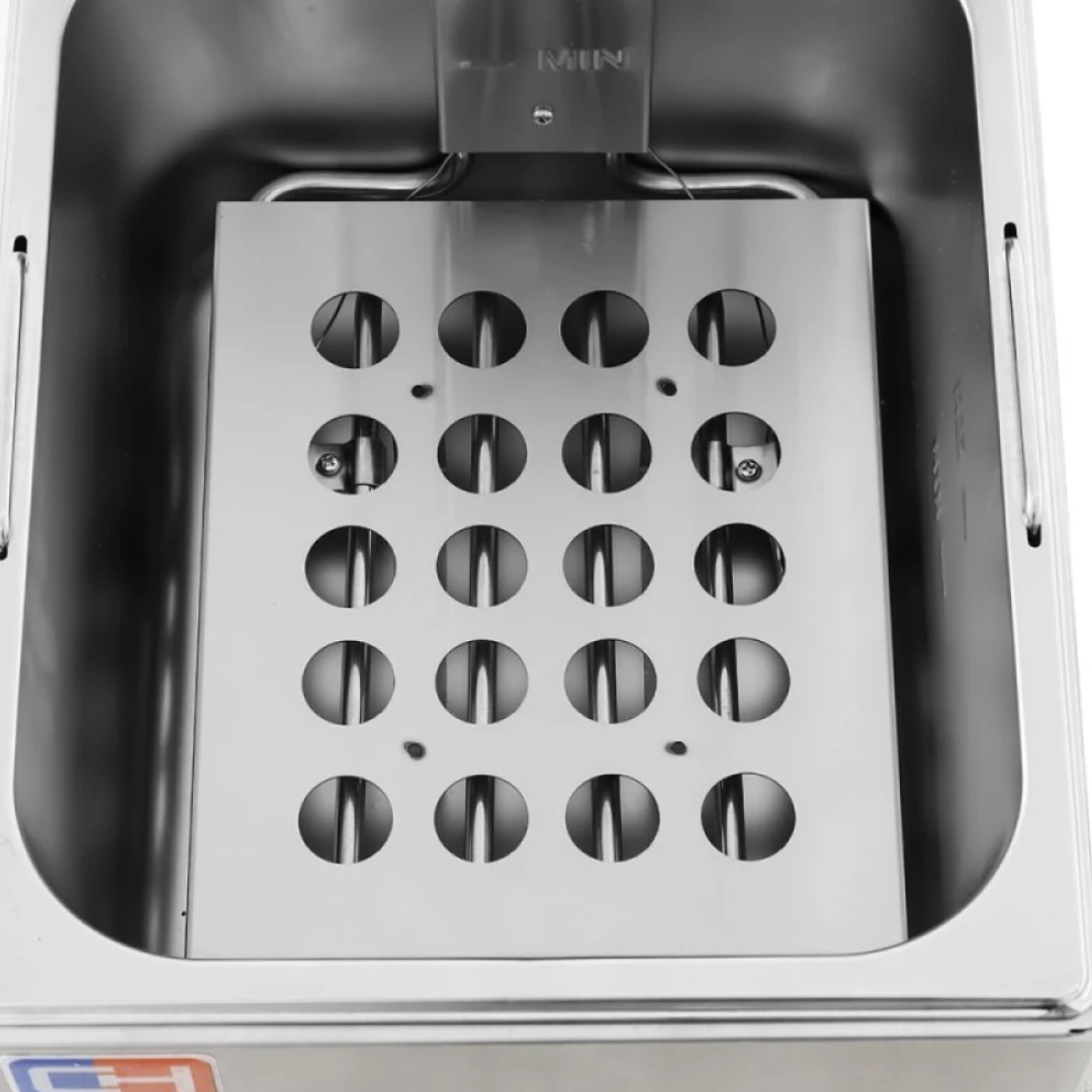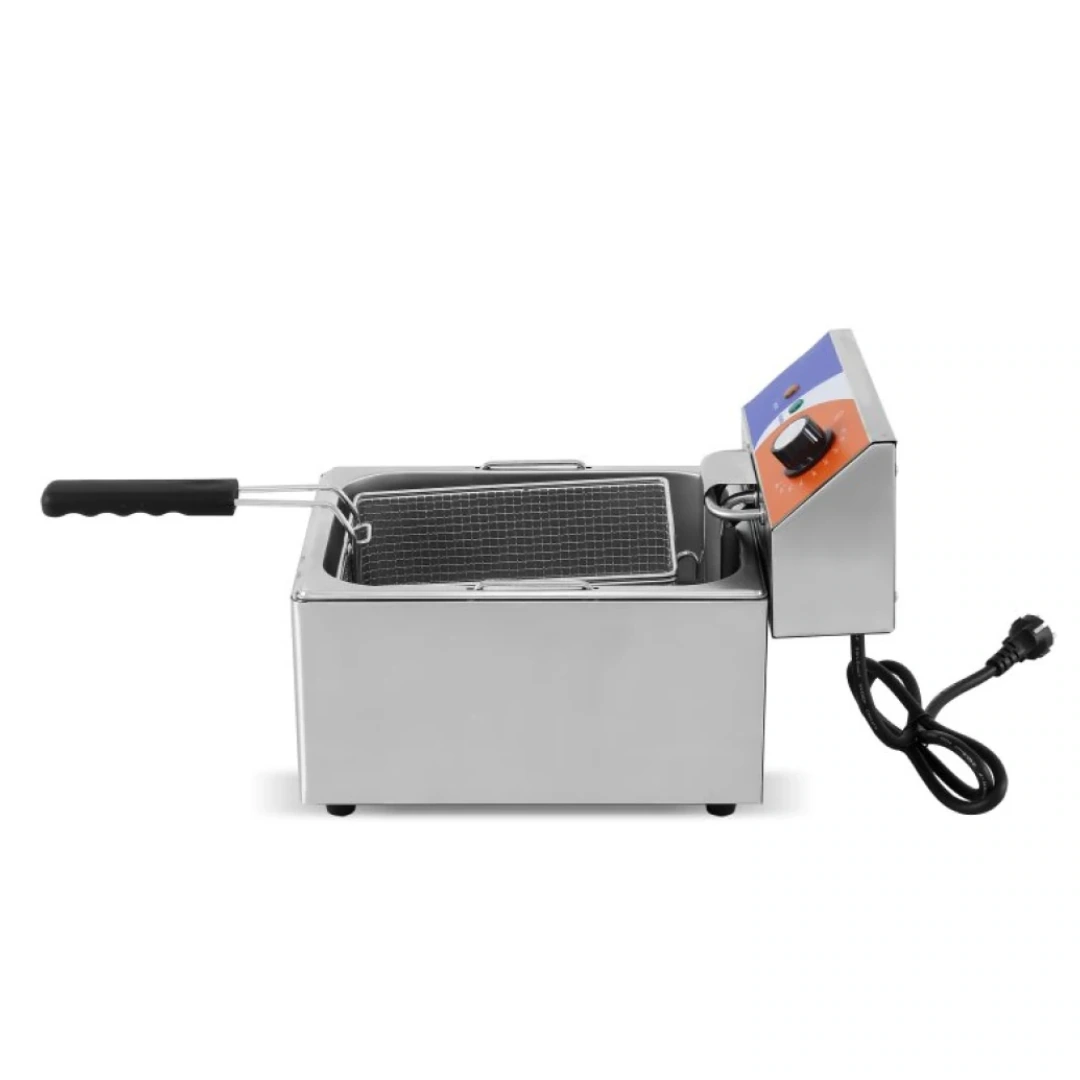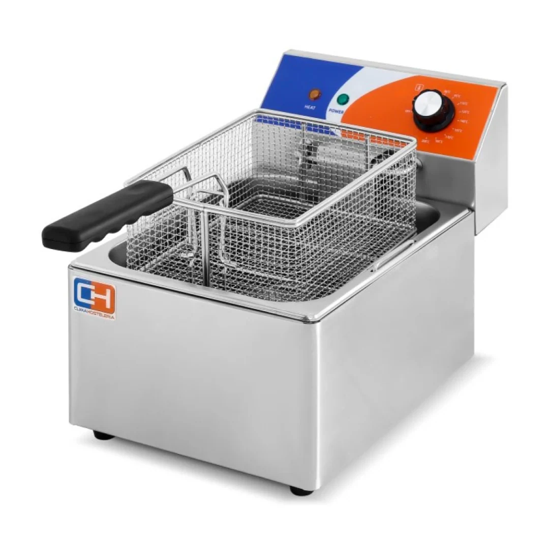 La Freidora Eléctrica Profesional EF-6L está diseñada para ofrecer frituras homogéneas y rápidas en entornos de hostelería. Con 6 litros de capacidad y una potencia de 3000 W, permite trabajar de forma eficiente incluso en servicios de alta demanda.