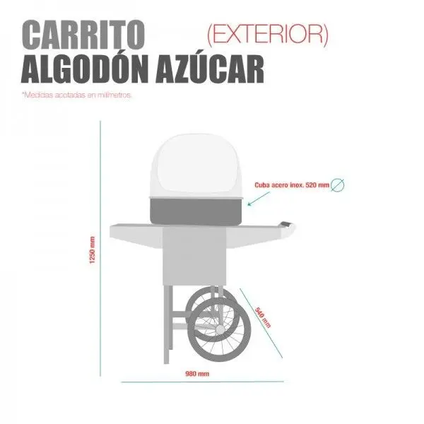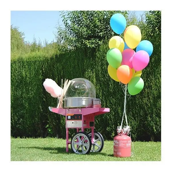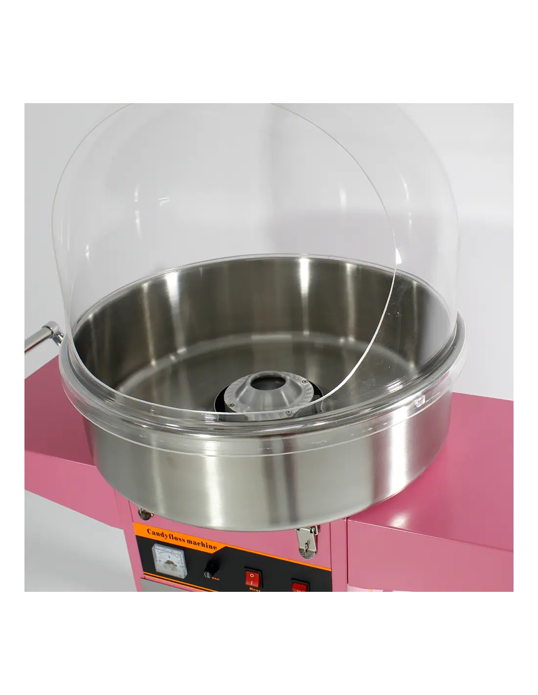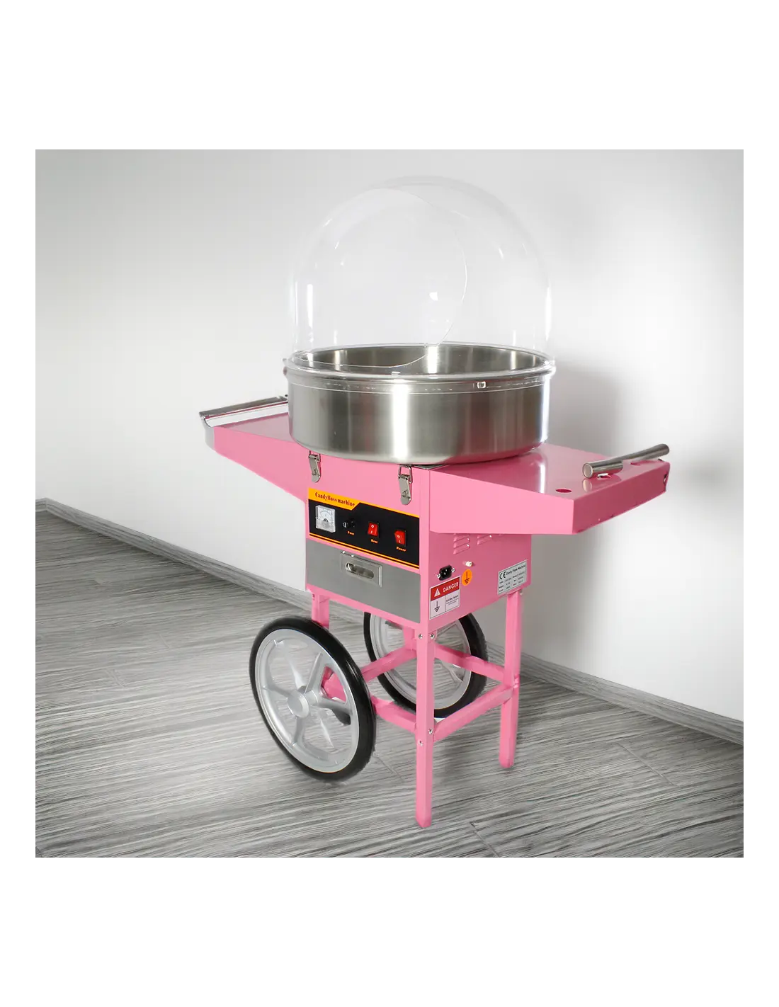 The Cotton Candy Machine with Cart is designed for a fast and eye-catching service at parties, fairs, weddings, communions, and corporate events. Its 52 cm Ø bowl ensures uniform and quick spinning, while the methacrylate dome protects both the product and the operator from the wind, keeping the sugar inside and improving hygiene.