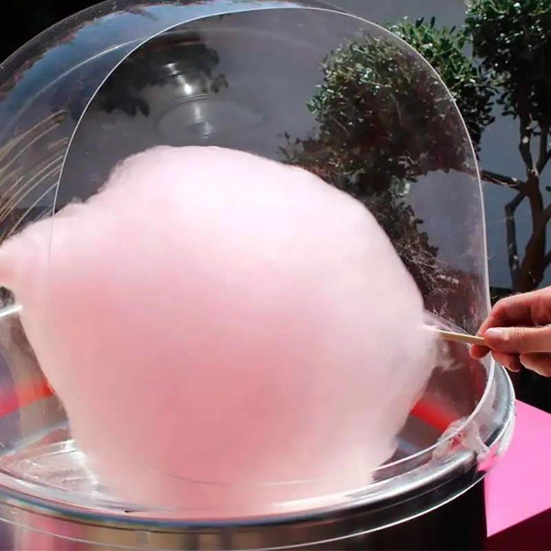It is not mandatory, but recommended: it reduces splashes, improves hygiene, and helps maintain the cotton candy’s shape, especially outdoors.