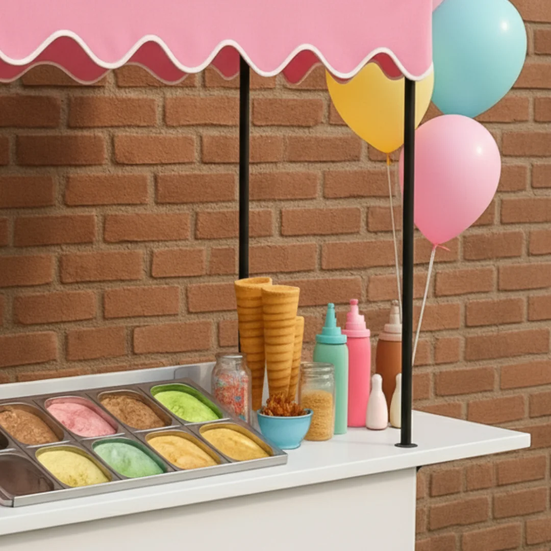 Faz com que o teu ponto de venda de gelados se destaque à primeira vista. O carrinho de gelados Deluxe combina design profissional, elevada capacidade de refrigeração e mobilidade segura para vender gelados e picolés com uma apresentação impecável em eventos, feiras e catering.